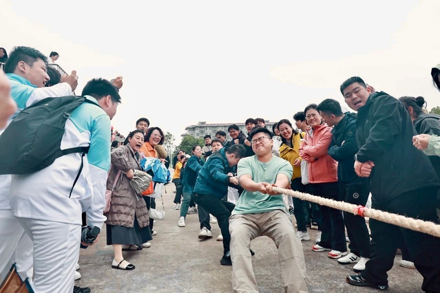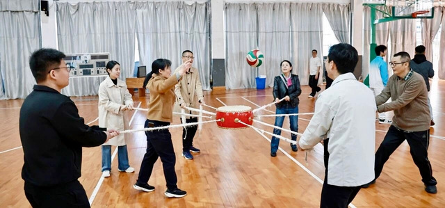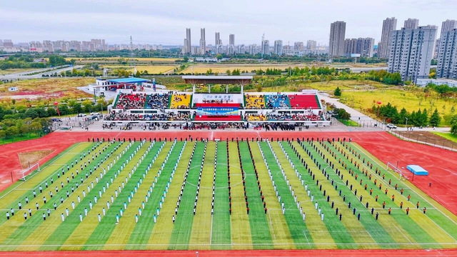 开幕式上,航空模型盘旋升空、机器人精准起舞,科技元素惊艳全场;孙悟空经典形象灵动登场,与太极扇、舞龙舞狮的传统韵味相映成趣;啦啦操的活力节拍与民族舞的柔美身姿交织,尽显多元文化魅力。各党总支、各学院的师生们进行了广播体操、健身气功比赛。